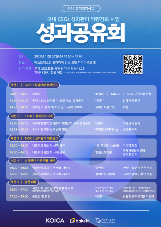 ํ๊ตญ๊ตญ์ ํ๋ ฅ๋จ(KOICA)์ด ์ฃผ๊ดํ๊ณ , ๋ฒ์ผ๋ผ์ ์ง๊ตฌ์ด๋๋์ด๋์ด ๊ณต๋์ผ๋ก ์ถ์ง ์ค์ธ DAK ์ ์ฑ