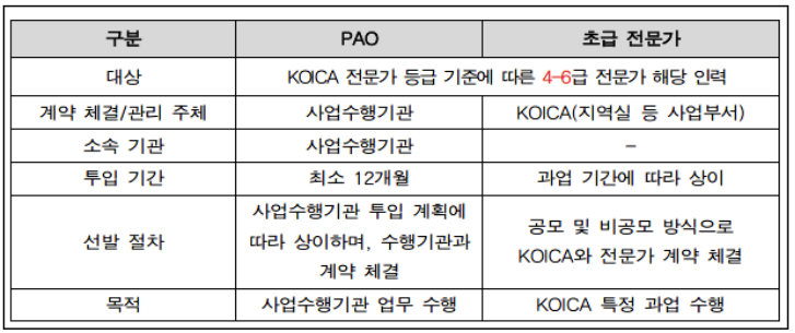 PAO(Project Action Officer, ํ๋ก์ ํธ ์ค๋ฌด ์ ๋ฌธ๊ฐ) ์ ๋์์๋ ๋์ฑ ์ฌ๊ฐํ ๊ตฌ์กฐ์ ๋ฌธ์ ๊ฐ ๋ฐ๊ฒฌ๋ฉ๋๋ค. KOICA์ ใKOICA ๊ตญ๋ณํ๋ ฅ์ฌ์