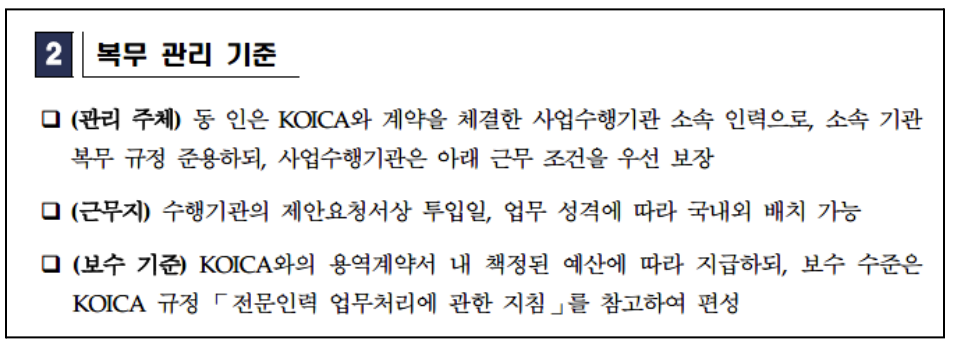 ์ด๊ธ ์ ๋ฌธ์ธ๋ ฅ ์ด์ ๊ฐ์ด๋๋ผ์ธใ์ ๋ฐ๋ฅด๋ฉด, KOICA๋ ๋